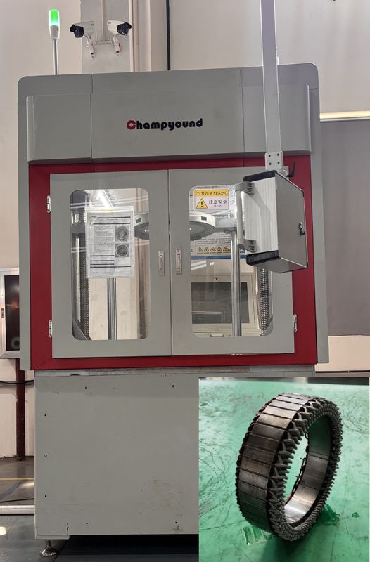 De Champyound motorstatorlijn wordt veel gebruikt voor de productie van vele soorten motorstators en bestaat uit verschillende machines, zoals draadvormende machines, inpersmachines, verruimingsmachines,met een vermogen van niet meer dan 10 kWElke machine in de statorlijn is onafhankelijk en kan ook aan een transportband worden gekoppeld.